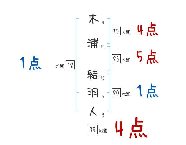 天運![]() | 木浦結羽人さんの天運は15画の4つ星!人徳があり出世する。順調に物事を進め円満な人生。 家系が持つ宿命的な運勢を表します。祖先から受け継いだ苗字ですので自分の力が及びません。家柄を象徴します。 |