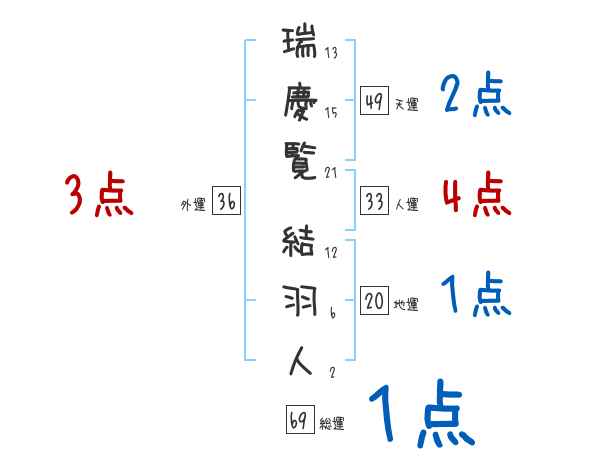 瑞慶覧結羽人さんの画数の鑑定結果