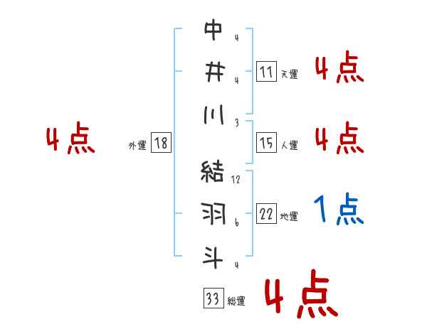 中井川結羽斗さんの画数の鑑定結果