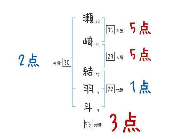 瀬﨑結羽斗さんの外運は30画の2つ星