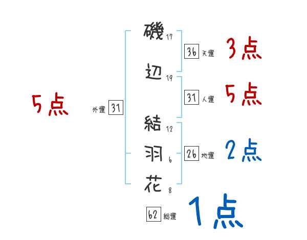 外運![]() | 磯辺結羽花さんの外運は31画の5つ星!社交性があり判断力に優れる。順風満帆な人生で円満な生活。 生活面を象徴する運勢です。外部から受ける影響力を表し、結婚運、家庭運や職場、環境への順応性を表します。 |