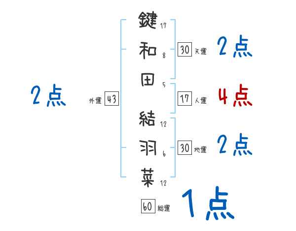 鍵和田結羽菜さんの画数の鑑定結果