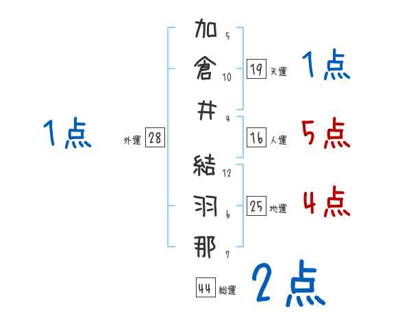 加倉井結羽那さんの画数の鑑定結果