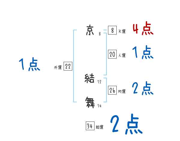 天運![]() | 京結舞さんの天運は8画の4つ星!勤勉家。根気強く努力し成功する。忍耐力がある。 家系が持つ宿命的な運勢を表します。祖先から受け継いだ苗字ですので自分の力が及びません。家柄を象徴します。 |
