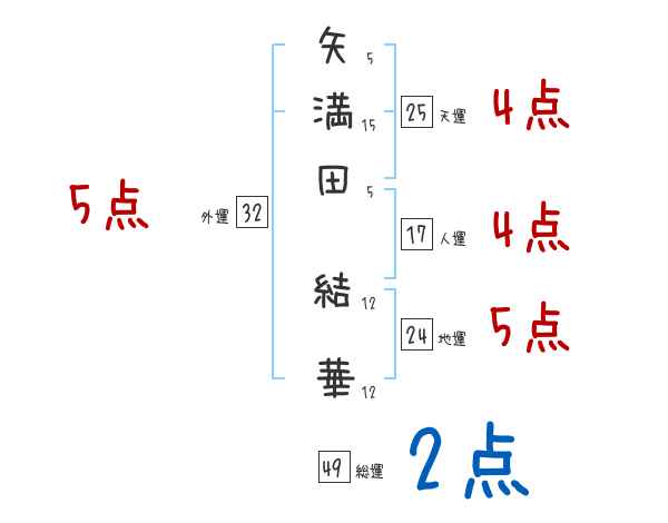 矢満田結華さんの画数の鑑定結果