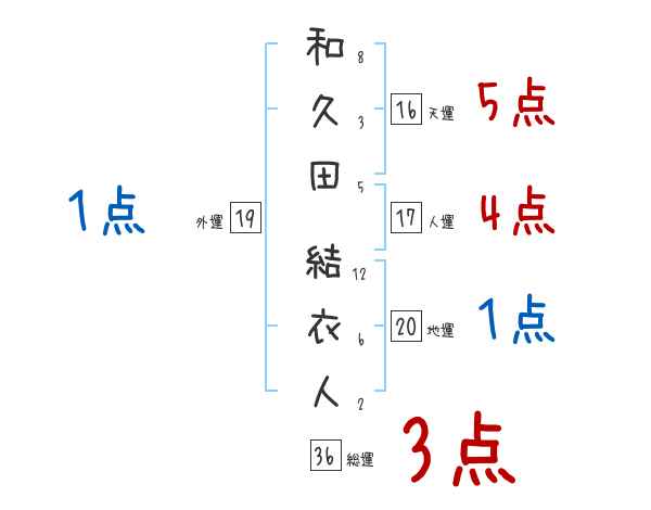 和久田結衣人さんの画数の鑑定結果