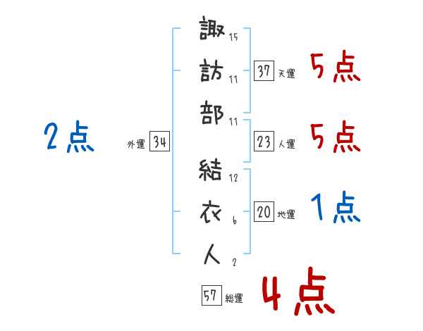 諏訪部結衣人さんの画数の鑑定結果