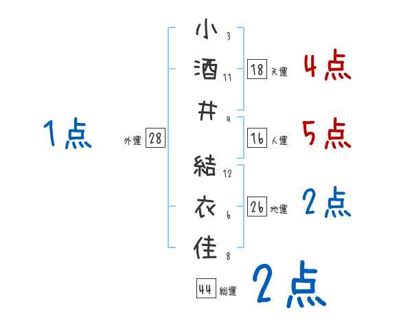 小酒井結衣佳さんの画数の鑑定結果