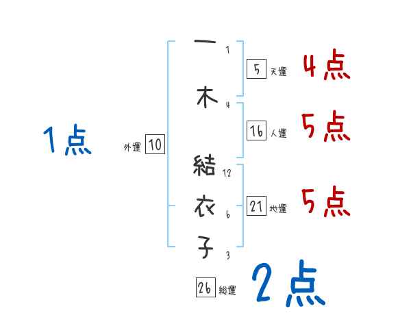 外運![]() | 一木結衣子さんの外運は10画の1つ星!不安を感じやすい傾向。ストレスを抱えないように注意しましょう。 生活面を象徴する運勢です。外部から受ける影響力を表し、結婚運、家庭運や職場、環境への順応性を表します。 |