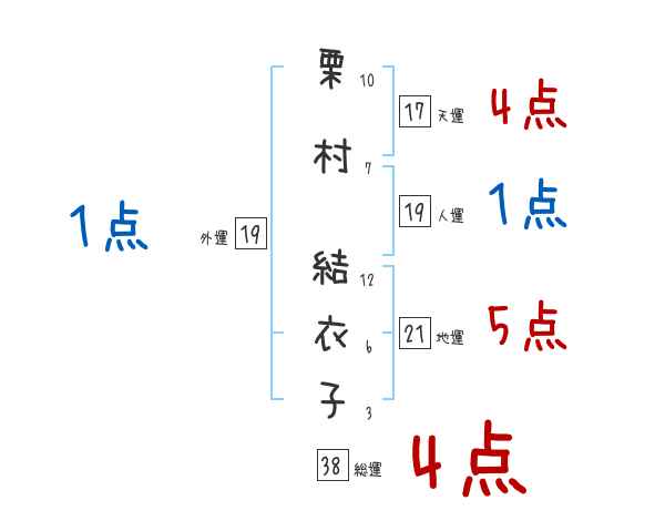 天運![]() | 栗村結衣子さんの天運は17画の4つ星!積極的な行動力。地位を気づき財産を手に入れる。純粋な心と直感力。 家系が持つ宿命的な運勢を表します。祖先から受け継いだ苗字ですので自分の力が及びません。家柄を象徴します。 |