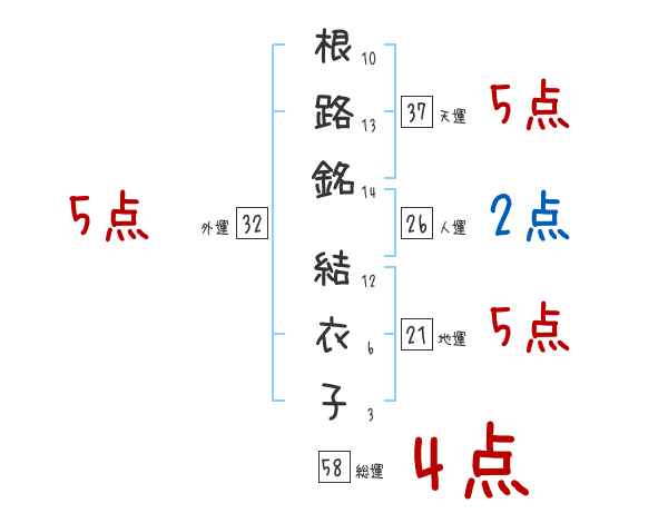 外運![]() | 根路銘結衣子さんの外運は32画の5つ星!柔軟性があり成功する。チャンスが多く金運が良い。 生活面を象徴する運勢です。外部から受ける影響力を表し、結婚運、家庭運や職場、環境への順応性を表します。 |