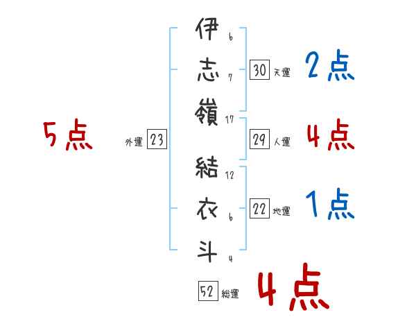 伊志嶺結衣斗さんの画数の鑑定結果