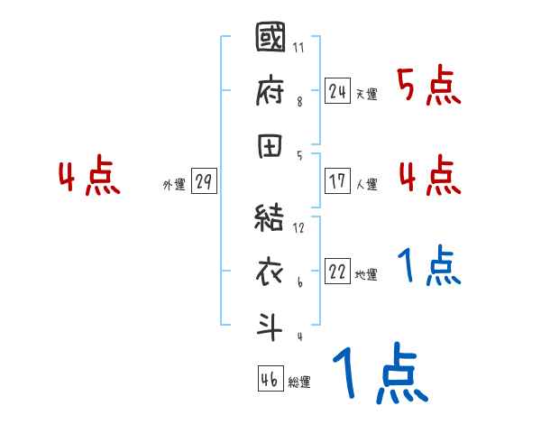 総運![]() | 國府田結衣斗さんの総運は46画の1つ星!迷走することが多く苦労するかも。目先のことにとらわれないように。 あなたの人生を表す1番重要な運勢です。生涯を通じて影響する総合運となり、主に50歳以降の晩年期に影響を及ぼします。 |