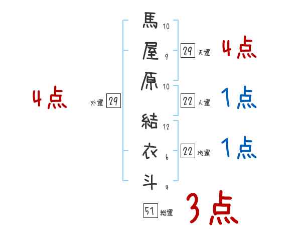 馬屋原結衣斗さんの画数の鑑定結果