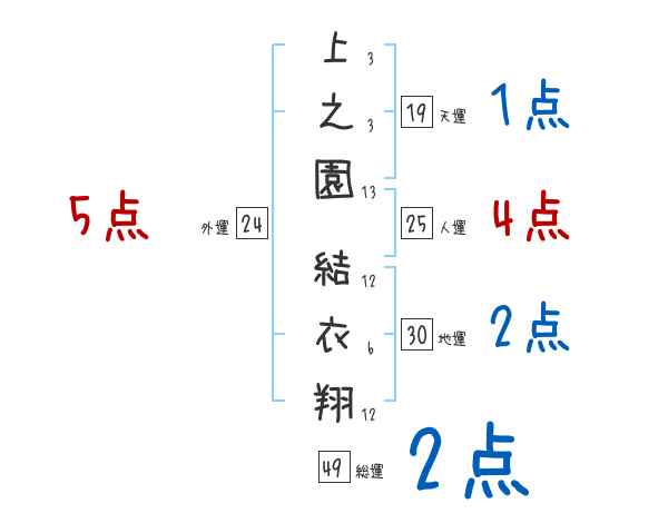 上之園結衣翔さんの画数の鑑定結果