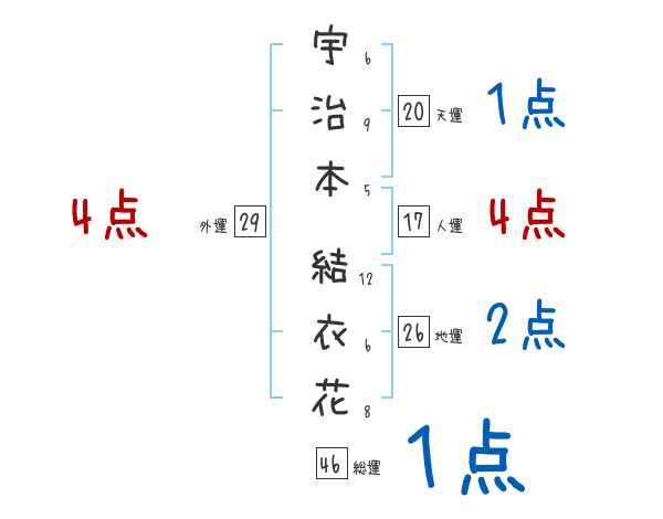 宇治本結衣花さんの画数の鑑定結果