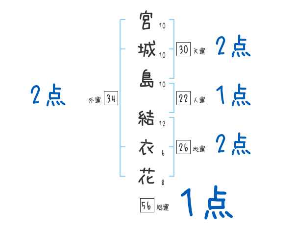 宮城島結衣花さんの画数の鑑定結果