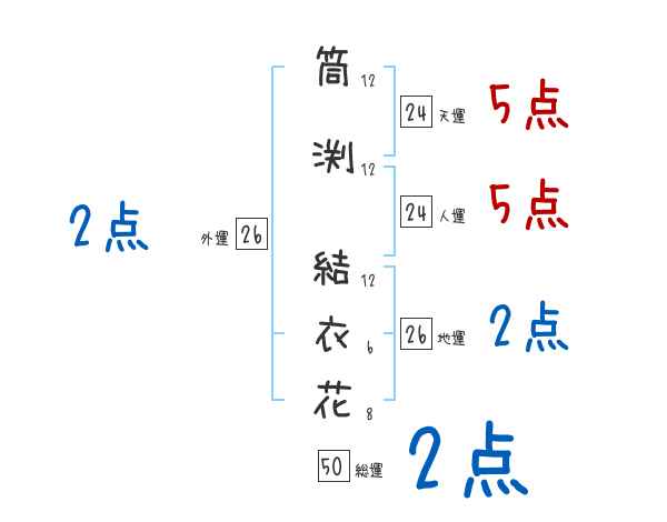 外運![]() | 筒渕結衣花さんの外運は26画の2つ星!波瀾万丈かも。信頼できる人を大事にしましょう。 生活面を象徴する運勢です。外部から受ける影響力を表し、結婚運、家庭運や職場、環境への順応性を表します。 |