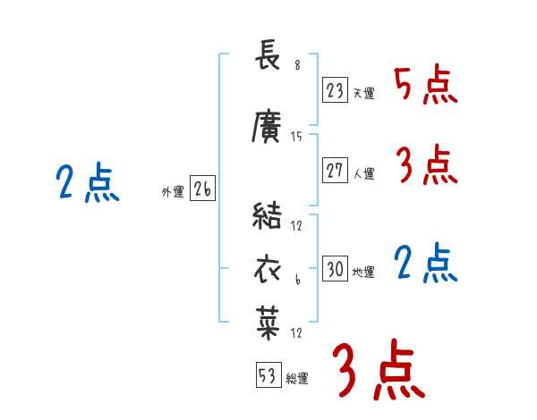 長廣結衣菜さんの画数の鑑定結果