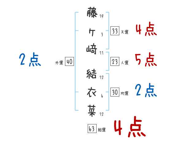 藤ヶ﨑結衣菜さんの画数の鑑定結果