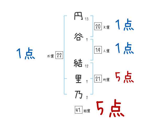 円谷結里乃さんの画数の鑑定結果