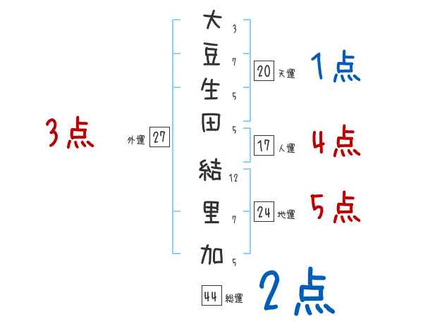 大豆生田結里加さんの画数の鑑定結果
