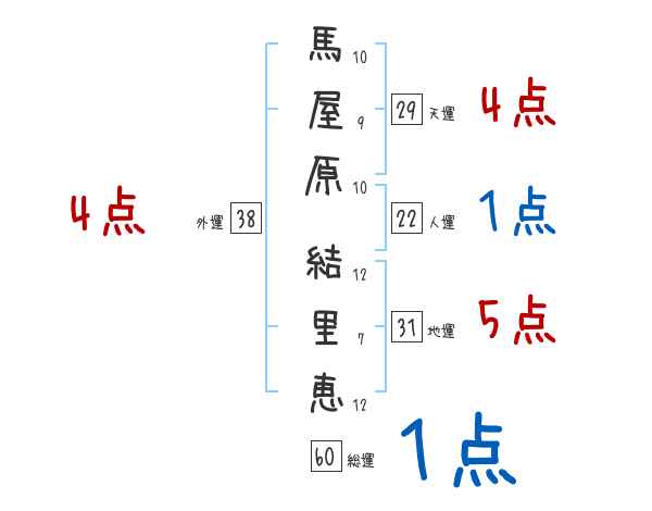 馬屋原結里恵さんの画数の鑑定結果