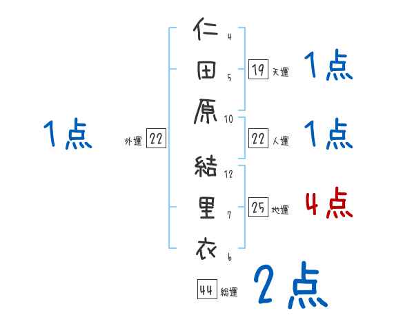 仁田原結里衣さんの画数の鑑定結果