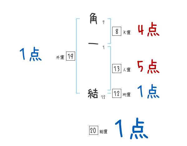 天運![]() | 角一結さんの天運は8画の4つ星!勤勉家。根気強く努力し成功する。忍耐力がある。 家系が持つ宿命的な運勢を表します。祖先から受け継いだ苗字ですので自分の力が及びません。家柄を象徴します。 |
