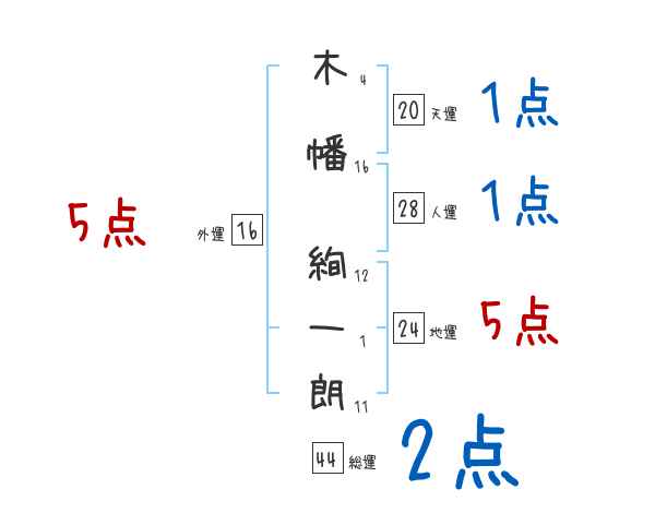 外運![]() | 木幡絢一朗さんの外運は16画の5つ星!人望が厚く大きく発展する。逆転成功が見える。 生活面を象徴する運勢です。外部から受ける影響力を表し、結婚運、家庭運や職場、環境への順応性を表します。 |