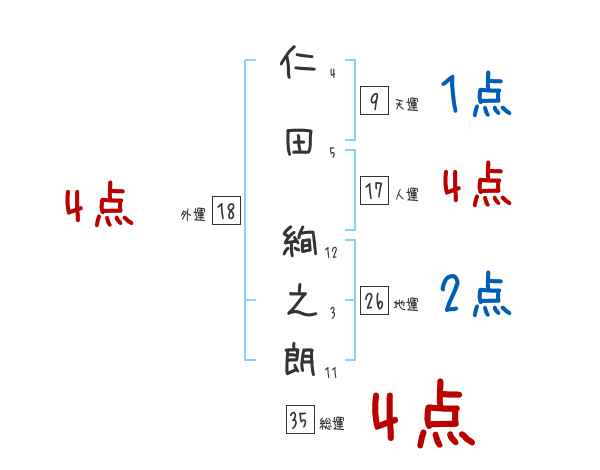 総運![]() | 仁田絢之朗さんの総運は35画の4つ星!温厚な性格で感受性が高い。穏和な性格で人望が厚い。 あなたの人生を表す1番重要な運勢です。生涯を通じて影響する総合運となり、主に50歳以降の晩年期に影響を及ぼします。 |