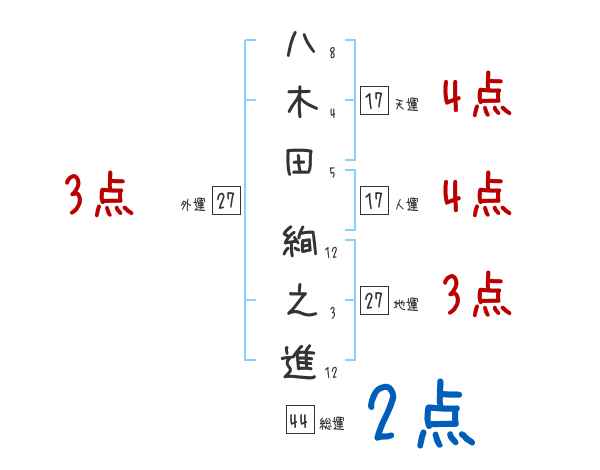 八木田絢之進さんの画数の鑑定結果