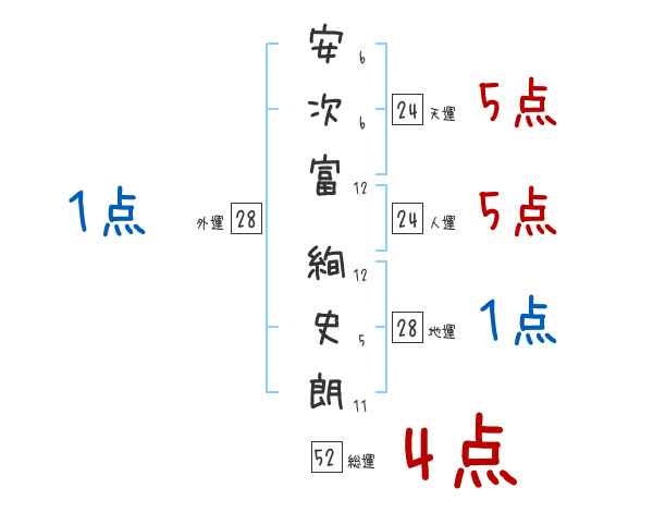 安次富絢史朗さんの画数の鑑定結果