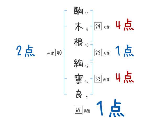 家系が持つ宿命的な運勢を表します。祖先から受け継いだ苗字ですので自分の力が及びません。家柄を象徴します。
