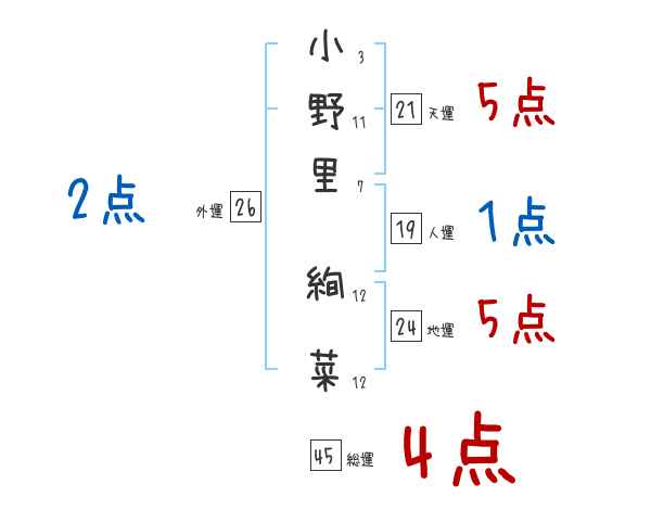小野里絢菜さんの画数の鑑定結果