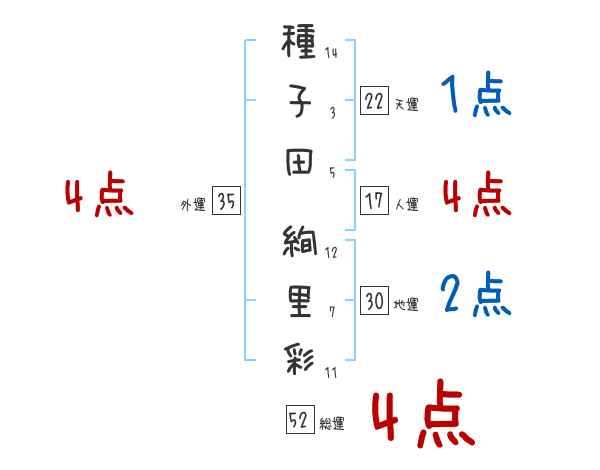 種子田絢里彩さんの画数の鑑定結果
