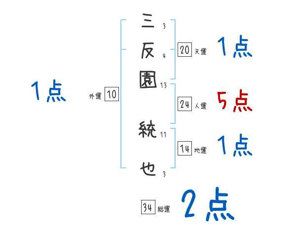 三反園統也さんの画数の鑑定結果