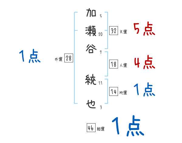 加瀬谷統也さんの画数の鑑定結果