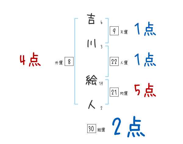 外運![]() | 吉川絵人さんの外運は8画の4つ星!勤勉家。根気強く努力し成功する。忍耐力がある。 生活面を象徴する運勢です。外部から受ける影響力を表し、結婚運、家庭運や職場、環境への順応性を表します。 |