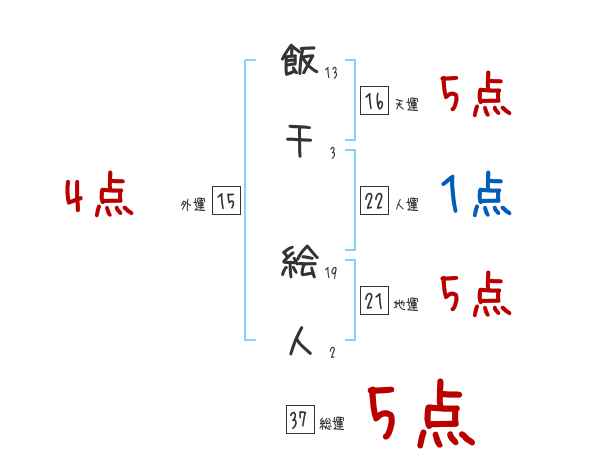 飯干絵人さんの外運は15画の4つ星