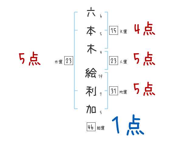 六本木絵利加さんの画数の鑑定結果