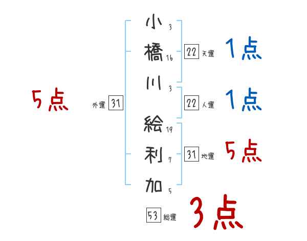 小橋川絵利加さんの画数の鑑定結果