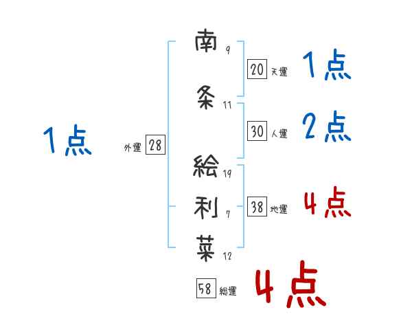 総運![]() | 南条絵利菜さんの総運は58画の4つ星!安定した生活。大器晩成タイプ。 あなたの人生を表す1番重要な運勢です。生涯を通じて影響する総合運となり、主に50歳以降の晩年期に影響を及ぼします。 |