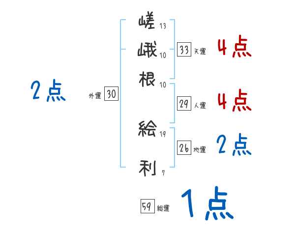嵯峨根絵利さんの画数の鑑定結果
