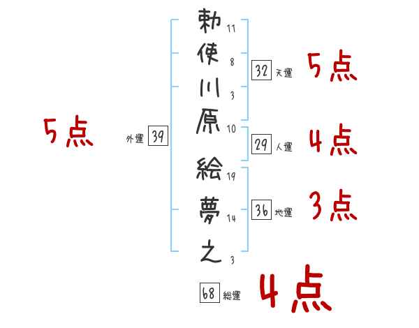 勅使川原絵夢之さんの画数の鑑定結果