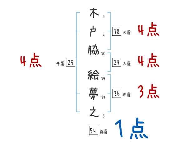 木戸脇絵夢之さんの画数の鑑定結果