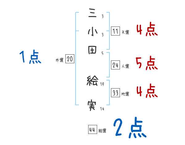 三小田絵実さんの画数の鑑定結果