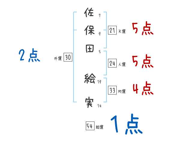 人運![]() | 佐保田絵実さんの人運は24画の5つ星!家庭運が良く順調な人生。金運にも恵まれる。 性格や才能などを表す2番目に重要な運勢です。人間関係や協調性、社会的な成功に影響します。主に20歳から50歳ぐらいまでの中年期の運勢を表します。 |