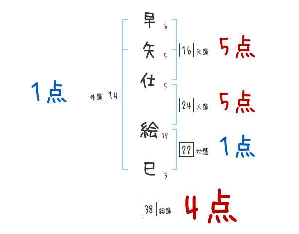 早矢仕絵巳さんの画数の鑑定結果
