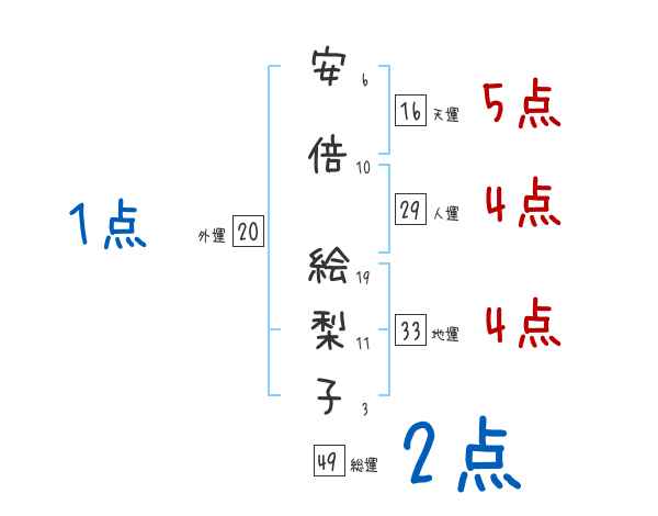 安倍絵梨子さんの画数の鑑定結果